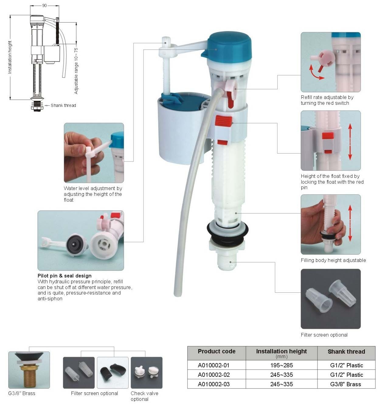 塑料接口 G1/2、铜接口 G3/8 可选